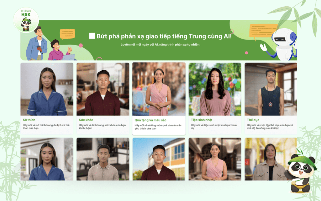 Với sự kết hợp giữa bài học, luyện nghe, hội thoại và AI sửa phát âm, Edmicro HSK giúp bạn tự luyện nói tiếng Trung tại nhà mà vẫn hiệu quả như học trực tiếp với giáo viên.