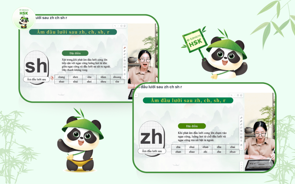 - Video hướng dẫn phát âm chậm – rõ – chuẩn: Giúp nghe rõ cách bật hơi, khẩu hình, đặc biệt là các âm khó như j/q/x, zh/ch/sh.