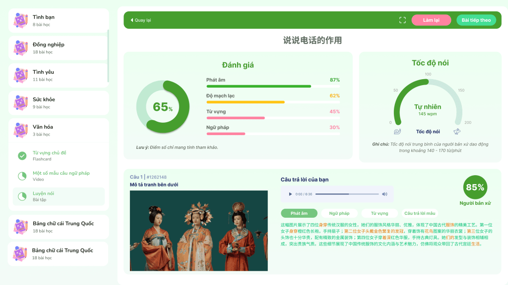 AI chấm chữa siêu tốc: Công nghệ AI hiện đại hoạt động như một gia sư thông minh không mệt mỏi. Chấm điểm tức thì, phân tích lỗi chi tiết, gợi ý cải thiện cụ thể – tất cả giúp bạn tiến bộ nhanh chóng mà không cần chờ đợi.